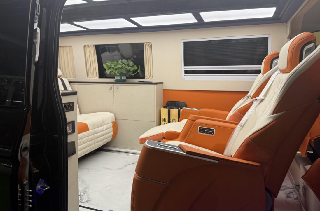 先鋒官V商務(wù)車則精準(zhǔn)捕捉了都市精英群體對(duì)于宿營(yíng)車多功能性的高階需求,內(nèi)飾采用商務(wù)風(fēng)格設(shè)計(jì),座椅與床鋪模式自由切換,巧妙融合商務(wù)接待的體面與家庭休旅的舒適,實(shí)現(xiàn)從城市街道到曠野風(fēng)景的無(wú)縫銜接。