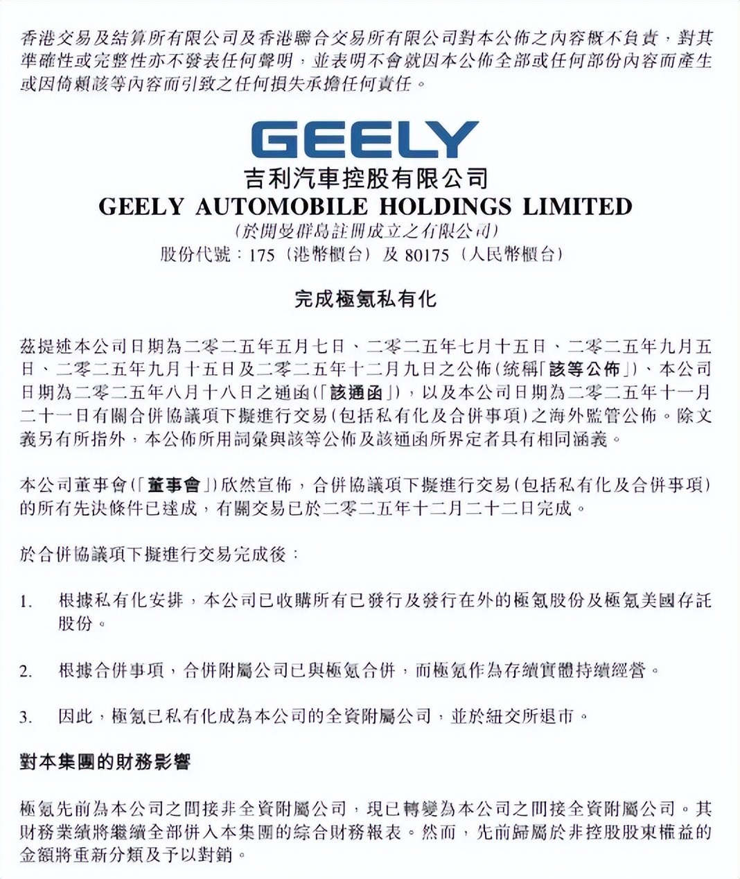 12月22日晚,吉利正式官宣完成對(duì)極氪的私有化,極氪成了吉利的全資附屬公司,同時(shí)從紐交所摘牌退市。從今年5月提出收購(gòu)到最終落地,這場(chǎng)歷時(shí)7個(gè)月的整合,看似是一個(gè)品牌的“回歸”,實(shí)則藏著中國(guó)汽車產(chǎn)業(yè)從“單點(diǎn)突破”轉(zhuǎn)向“體系作戰(zhàn)”的大邏輯。咱們?nèi)锶硕记宄@事兒對(duì)吉利、對(duì)極氪,甚至對(duì)整個(gè)行業(yè),都不是小事。